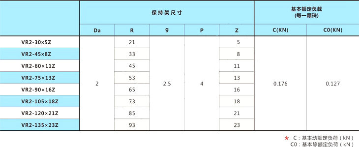 在VR型中,各滚柱保持架分开,由于保持架中的滚柱袋与滚柱面接触,有良好的润滑油保持性,所以无磨损,摩擦小,从而能获得平滑的滚动运动。