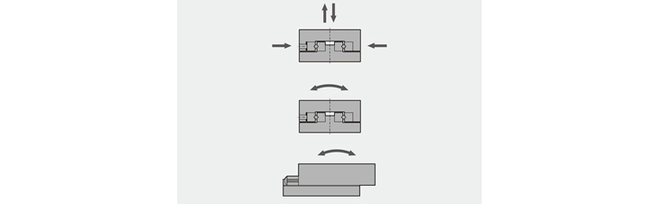 由于滚子被互相垂直地排列,所以能承受作用在工作台上的所有方向的负荷,参考下图: