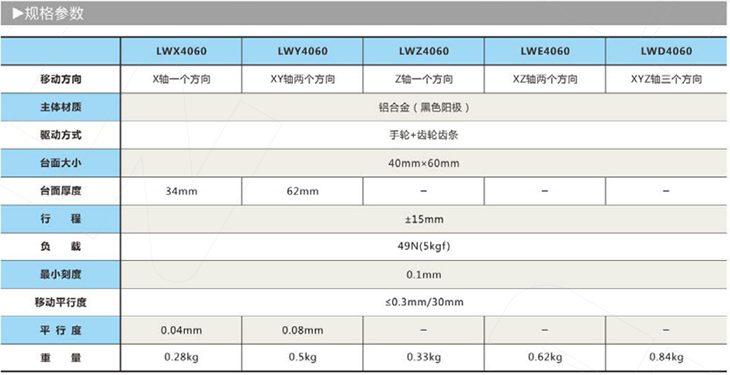 手动位移平台型号说明