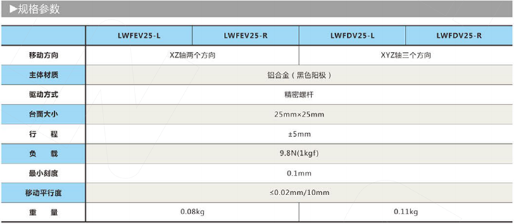 手动位移平台型号说明