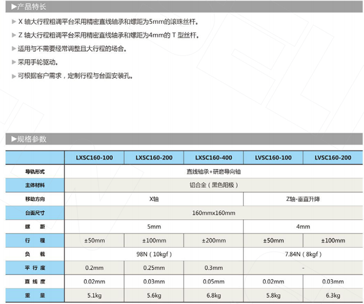 LX5C160-400大行程粗调平台