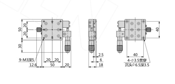 50*50 X轴 LX50-R微调架 LX50-R手动位移平台 LX50-R精密可调手动位移平台