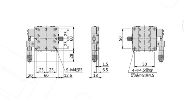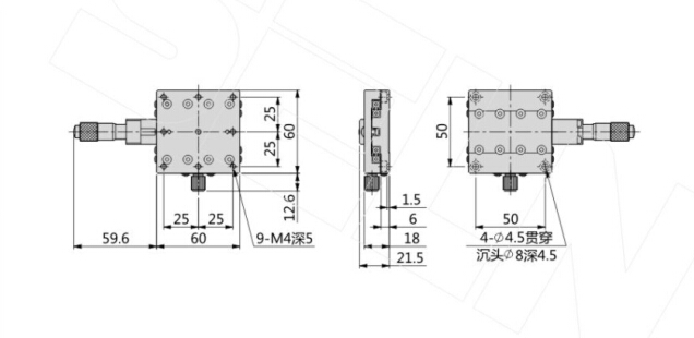 60*60 X轴 LX60-C 微调架 LX60-C手动可调平台 LX60-C 手动位移平台 LX60-C精密可调手动位移平台